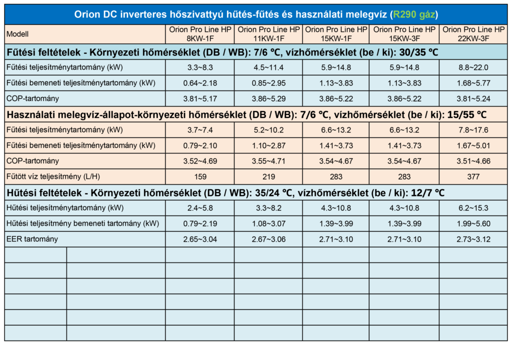 COP 3,5-4,7 értékkel az Orion PRO LINE HP hőszivattyúink A+++/A++ hatékonysággal működnek. Kevesebb energiát fogyasztanak, így segíthetnek a felhasználóknak csökkenteni az energiaszámlákat.